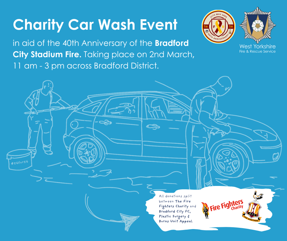 Crews across the Bradford District are holding a Charity Car Wash event in aid of the Bradford City Fire Disaster, where 54 Bradford City Fans and 2 Lincoln City Fans never returned home from a game of football.